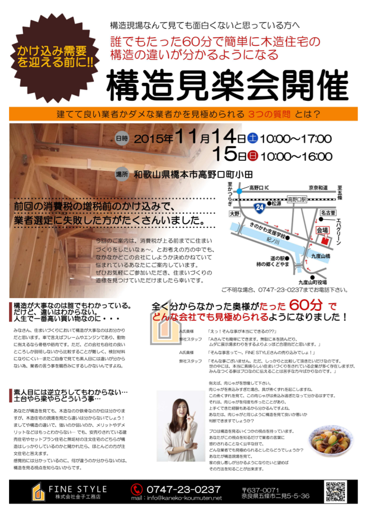 5/14(土)、15(日) 高野口町伏原 構造見学会開催!
